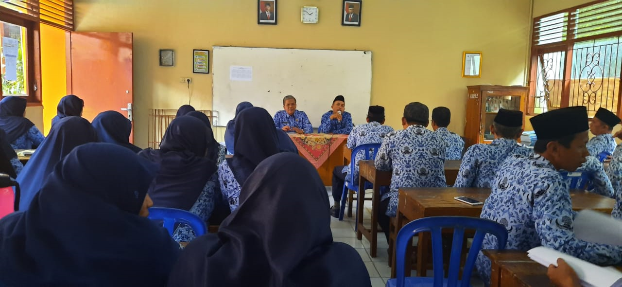 Para guru dan karyawanpun mendengarkan serta memperhatikan secara seksama arahan dari Kepala Madrasah dan Waka Kurikulum. (Ari)