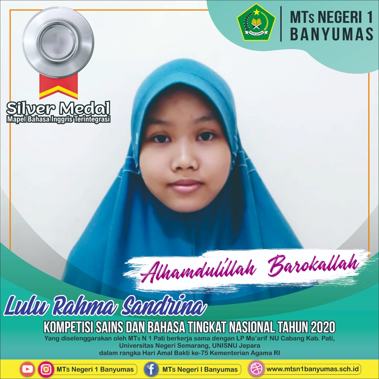 2. Lulu Rahma Sandrina (kls IX A) peraih medali perak pd mapel Bhs.Inggris Terintegrasi;